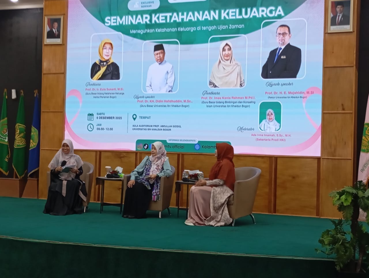 Program Studi Hukum Keluarga Islam (Prodi HKI) Fakultas Agama Islam Universitas Ibnu Khaldun (UIKA) Bogor menggelar Seminar Ketahanan Keluarga yang menghadirkan dua pakar nasional: Prof. Euis Sunarti, Pemerhati Keluarga dan Guru Besar IPB University, serta Prof Dr. Imas Kania Rahman, M.Pd.I Guru Besar Bimbingan dan Konseling UIKA Bogor, Sabtu (6/12/2025).