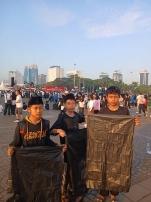 Santri menjadi tim kebersihan usai pelaksanaan Aksi Akbar Bela Gaza