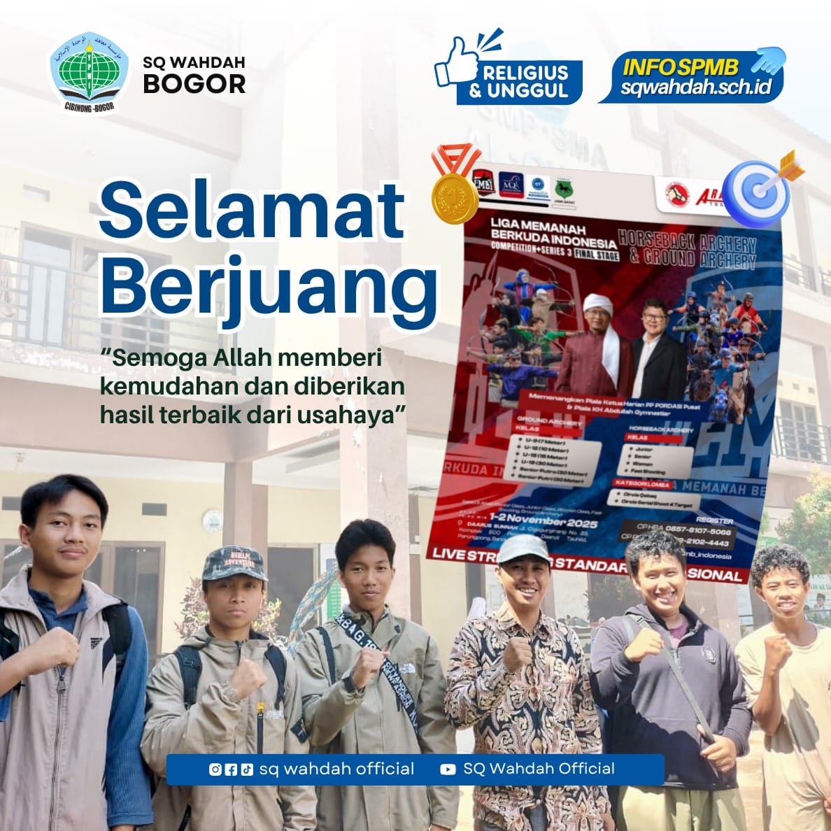 Selamat berjuang, Tim Pemanah SQ Wahdah Bogor! “Kalian membawa nama baik Sekolah Qur’an Wahdah islamoyah Cibinong Bogor”